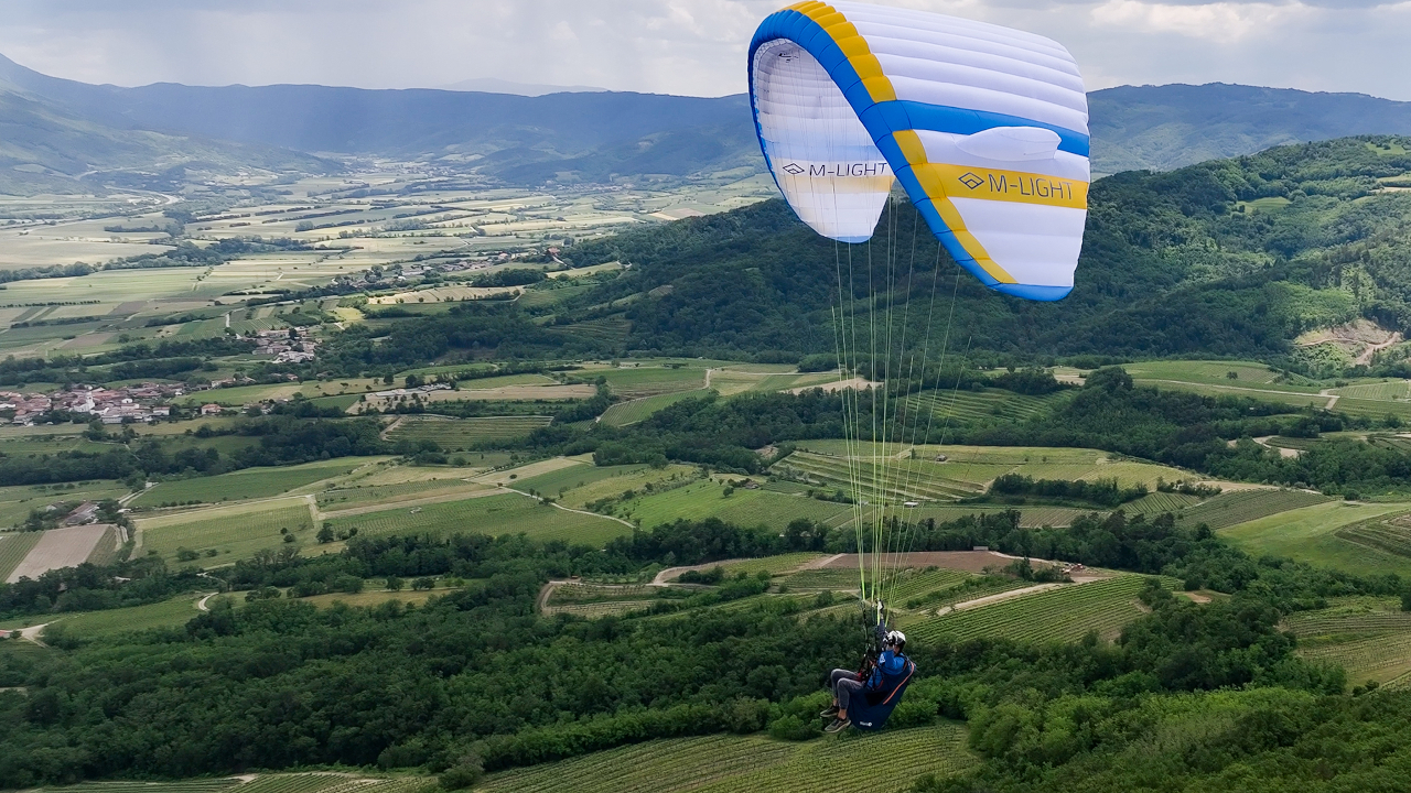Triple Seven M‑Light to lekka i stabilna paralotnia EN‑A (33 komory, AR 4,7, kevlarowe risery) – łatwy start idealny do hike & fly.